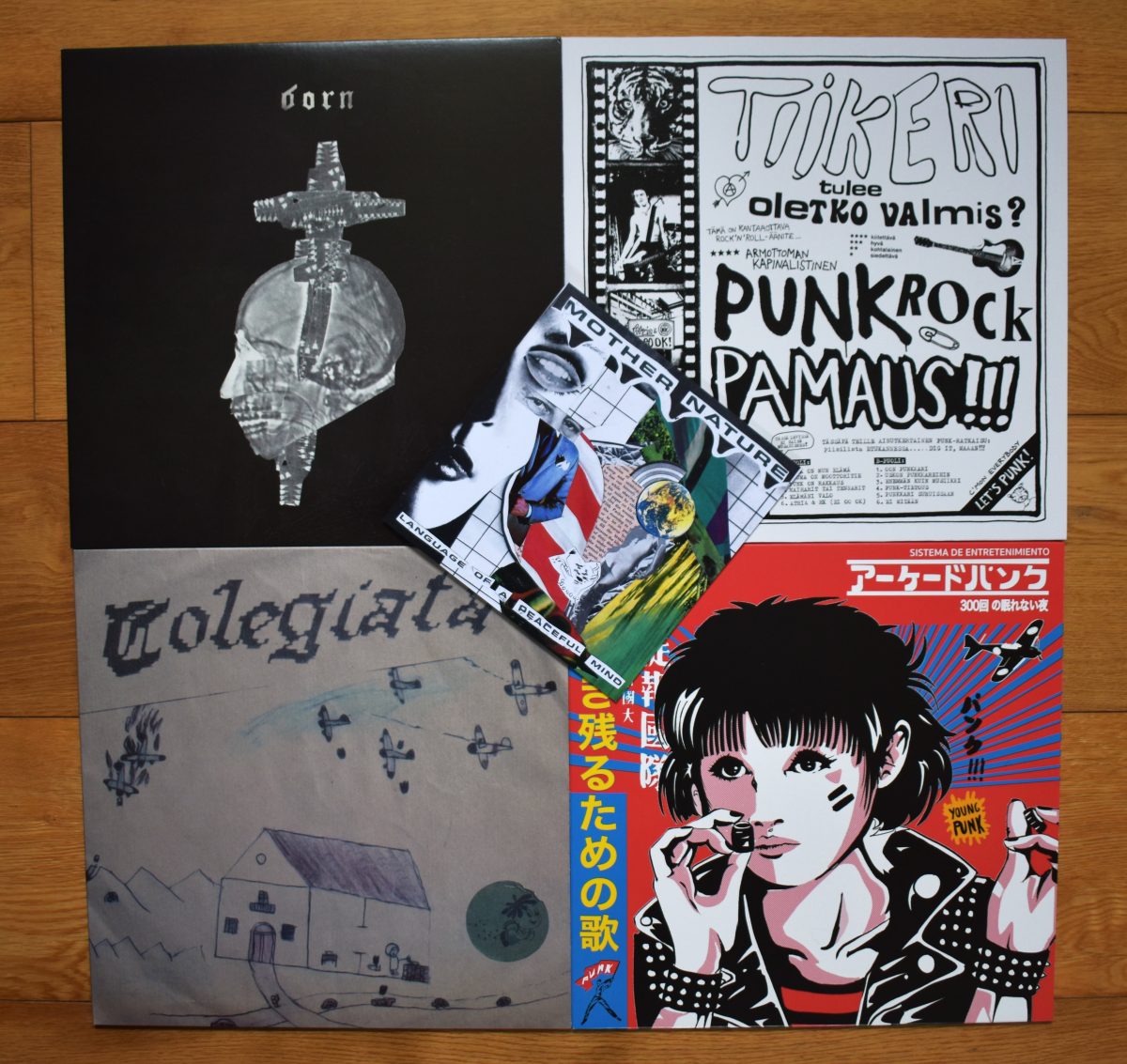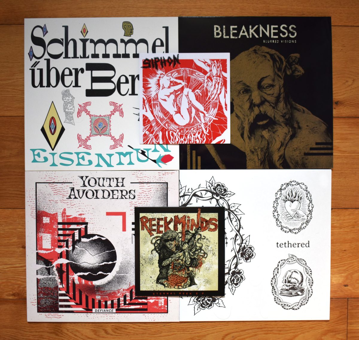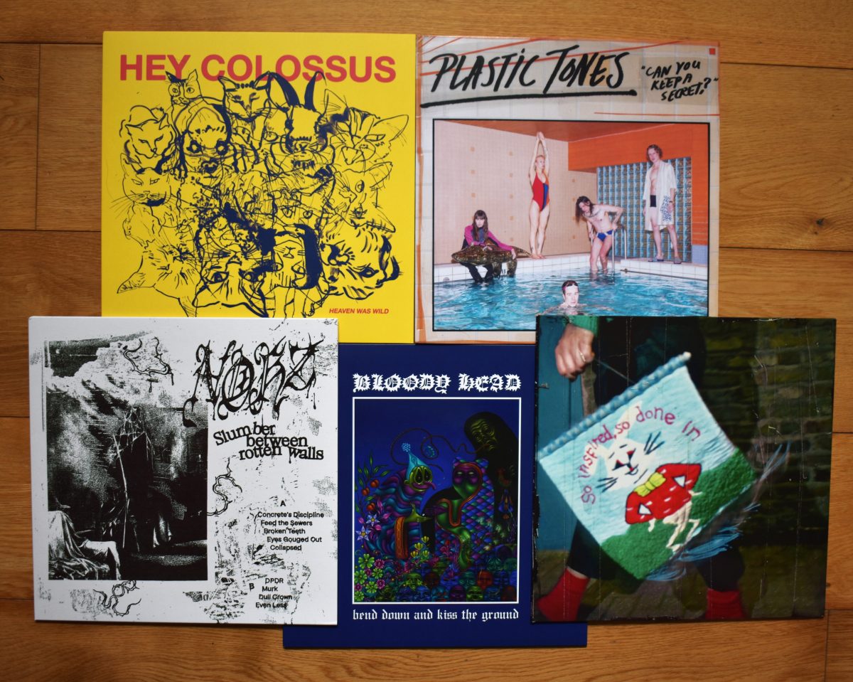 Heaven Was Wild by Hey Colossus / Can You Keep A Secret by Plastic Tones / So Inspired, So Done In by Dog Chocolate / Bend Down And Kiss The Ground by Bloody Head / Slumber Between Rotten Walls by Nohz (clockwise)