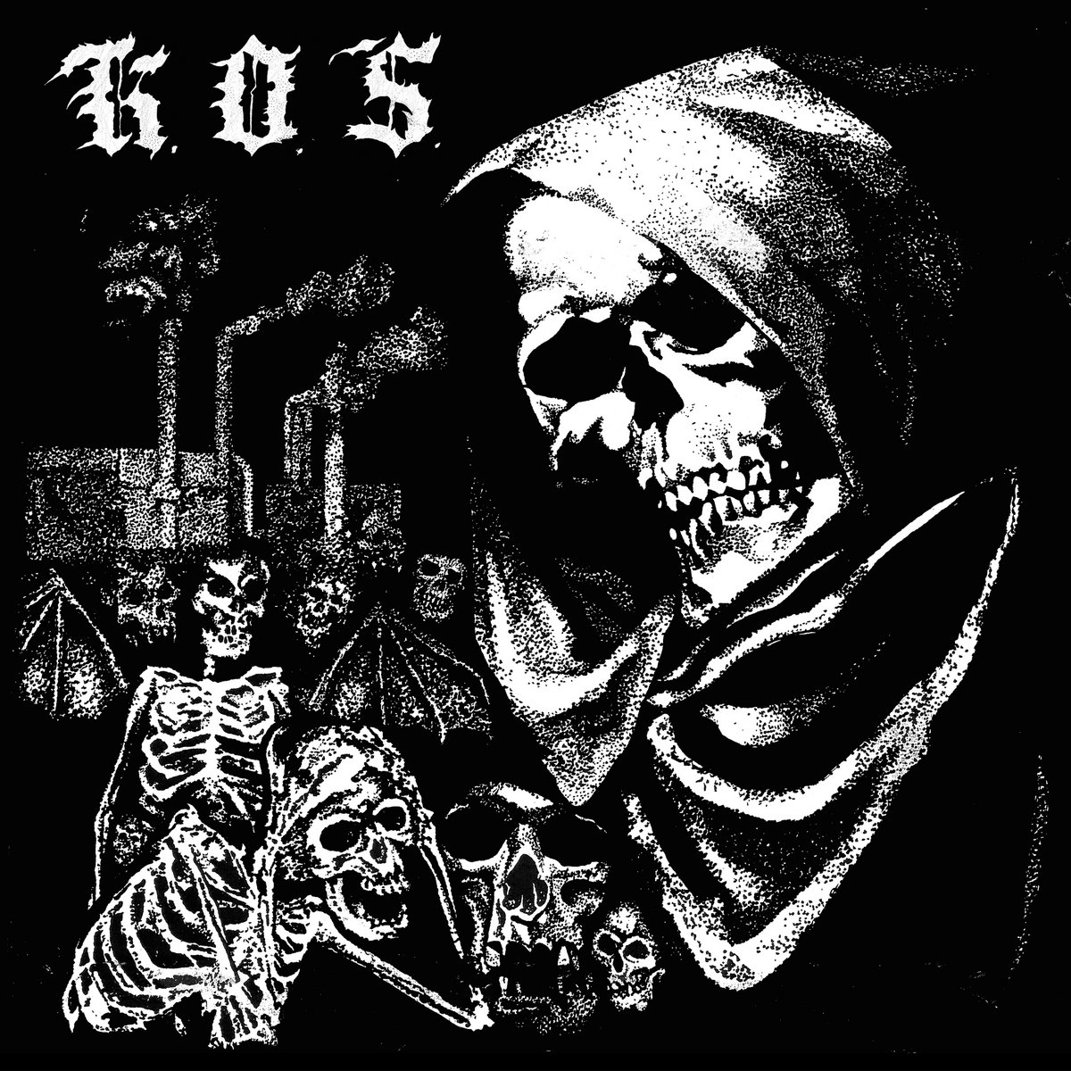A kinetic orbital strike apparently refers to a rather bleak military fantasy of an inert projectile that can be fired from space and wreak devastation through the kinetic energy it generates on impact. And as you conjure with that delight, imagine it in musical form – rarely has a band been so aptly named. K.O.S hail from Philadelphia and this is their debut five-track EP, following on from their self-titled demo, which has also subsequently been pressed to vinyl. The tracks across both releases were actually recorded at the same time and share the same virulent urgency. Savagely raw vocals conjure apocalyptic visions, while an utterly manic rhythm section underpins the raw, distorted guitars that verge on the unhinged, hitting with particular ferocity on Evil Action and True Disaster. Discharge inspired devotion in the vein of Framtid certainly, but a vividly distinctive take, and one delivered with fiercely aggressive precision.